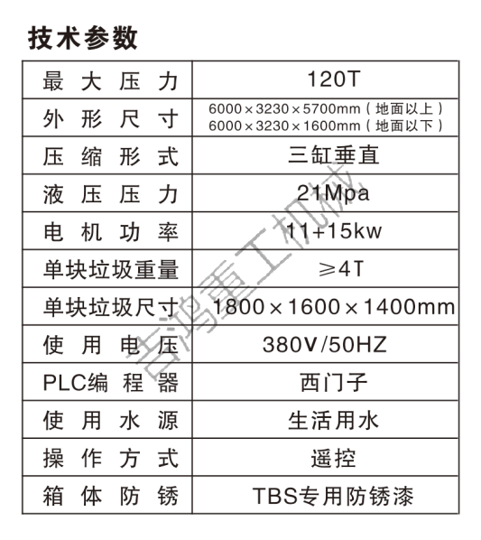 JHZG3120型垂直三缸四柱垃圾壓縮中轉站